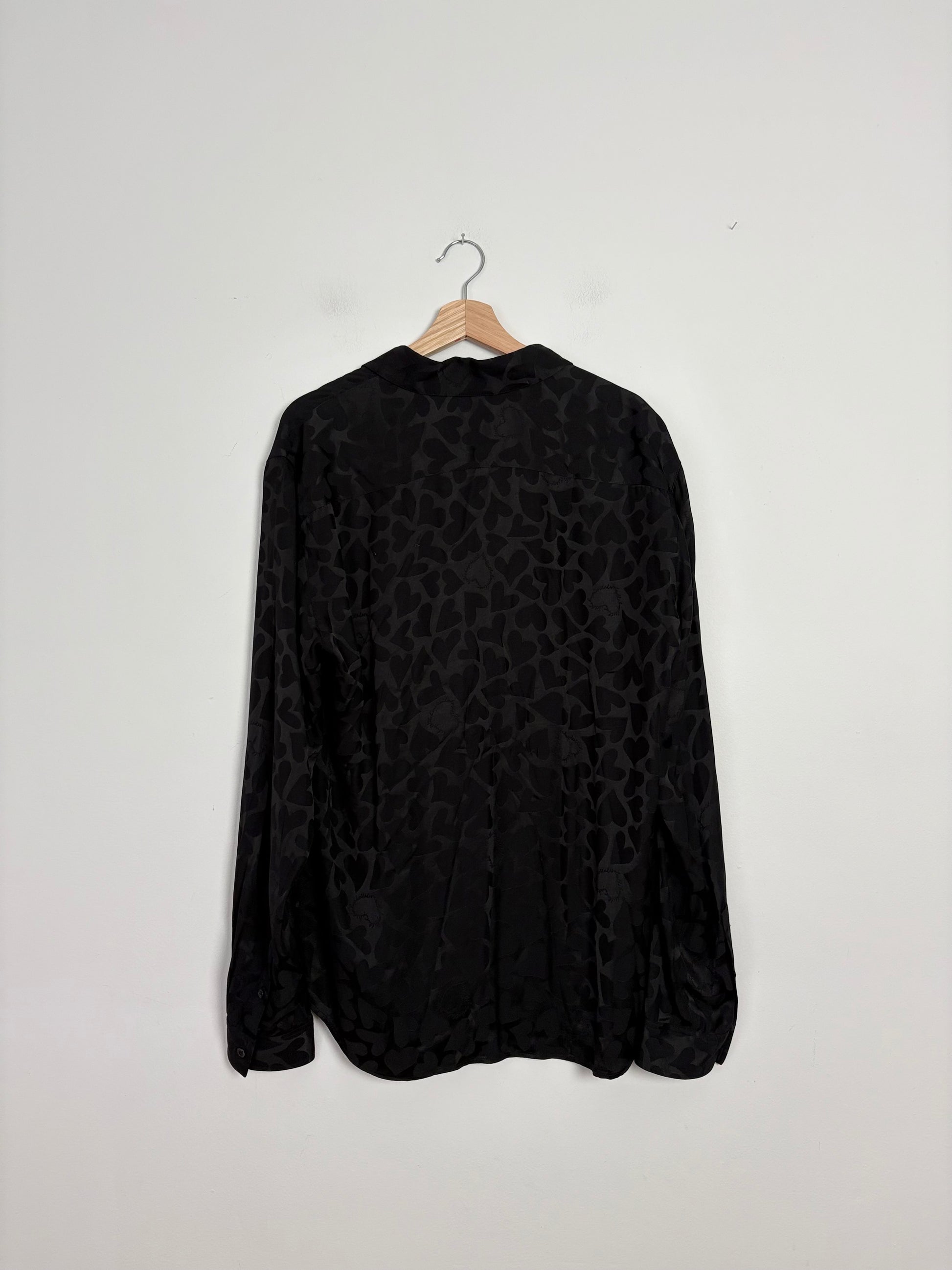 Black tone on tone heart printed button up shirt