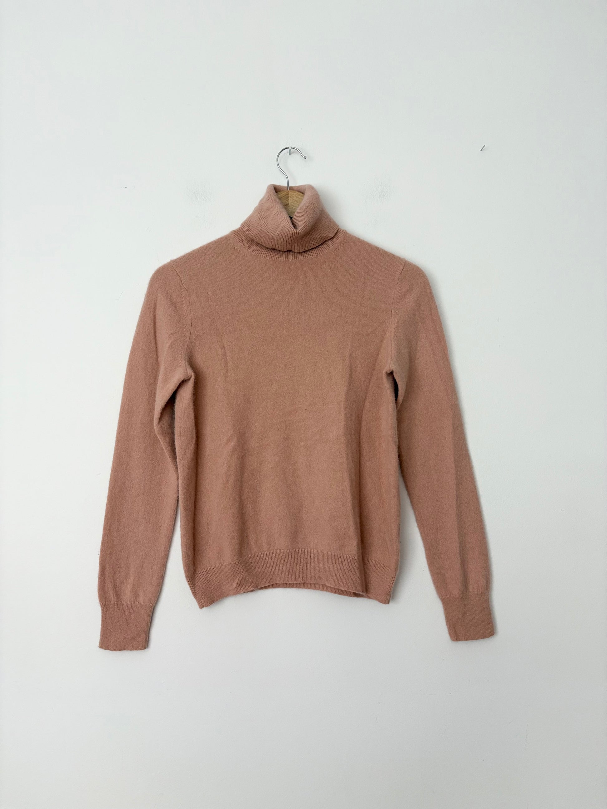 Pink cashmere turtleneck sweater