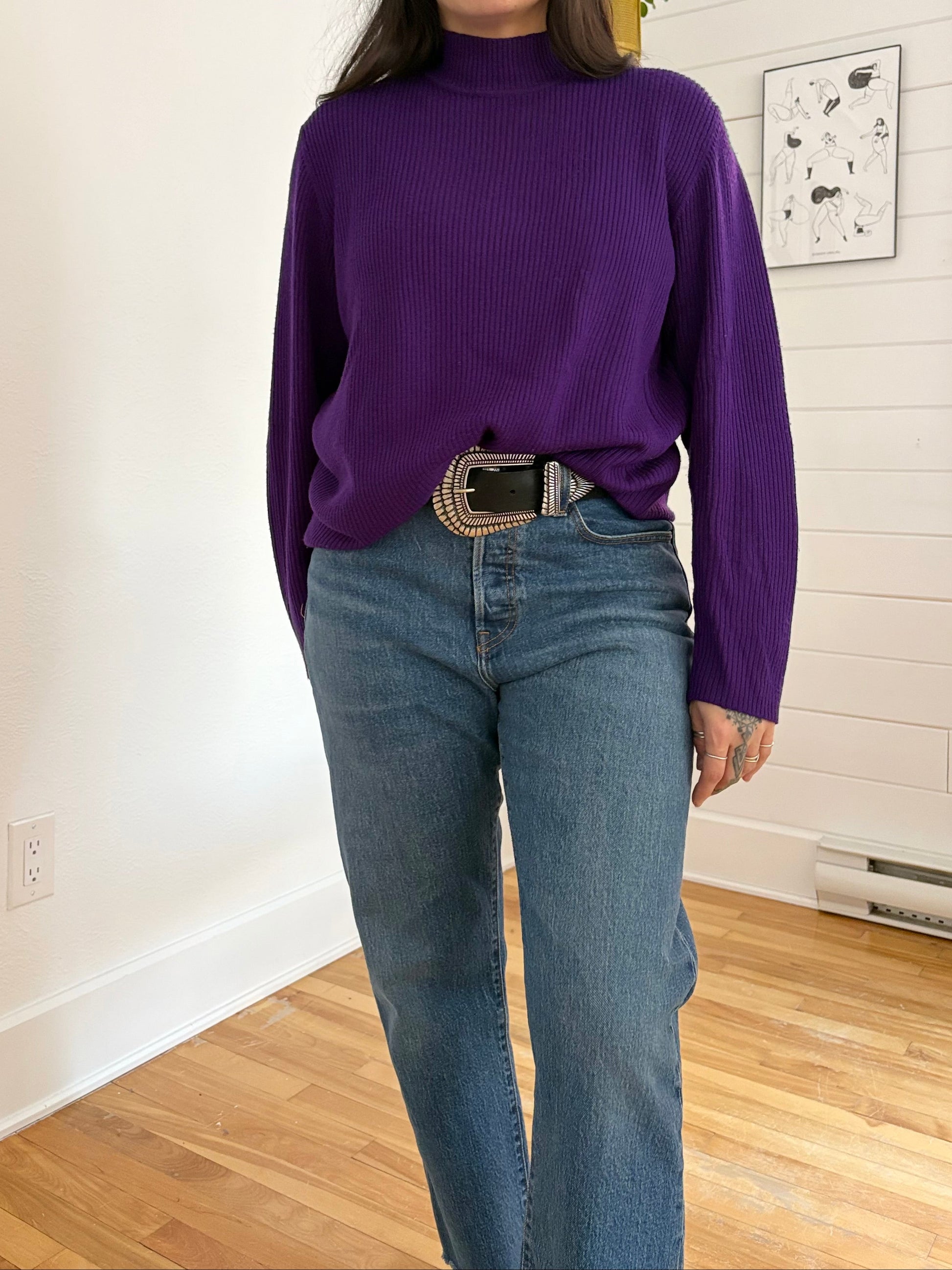 Purple ribbed merino wool sweater