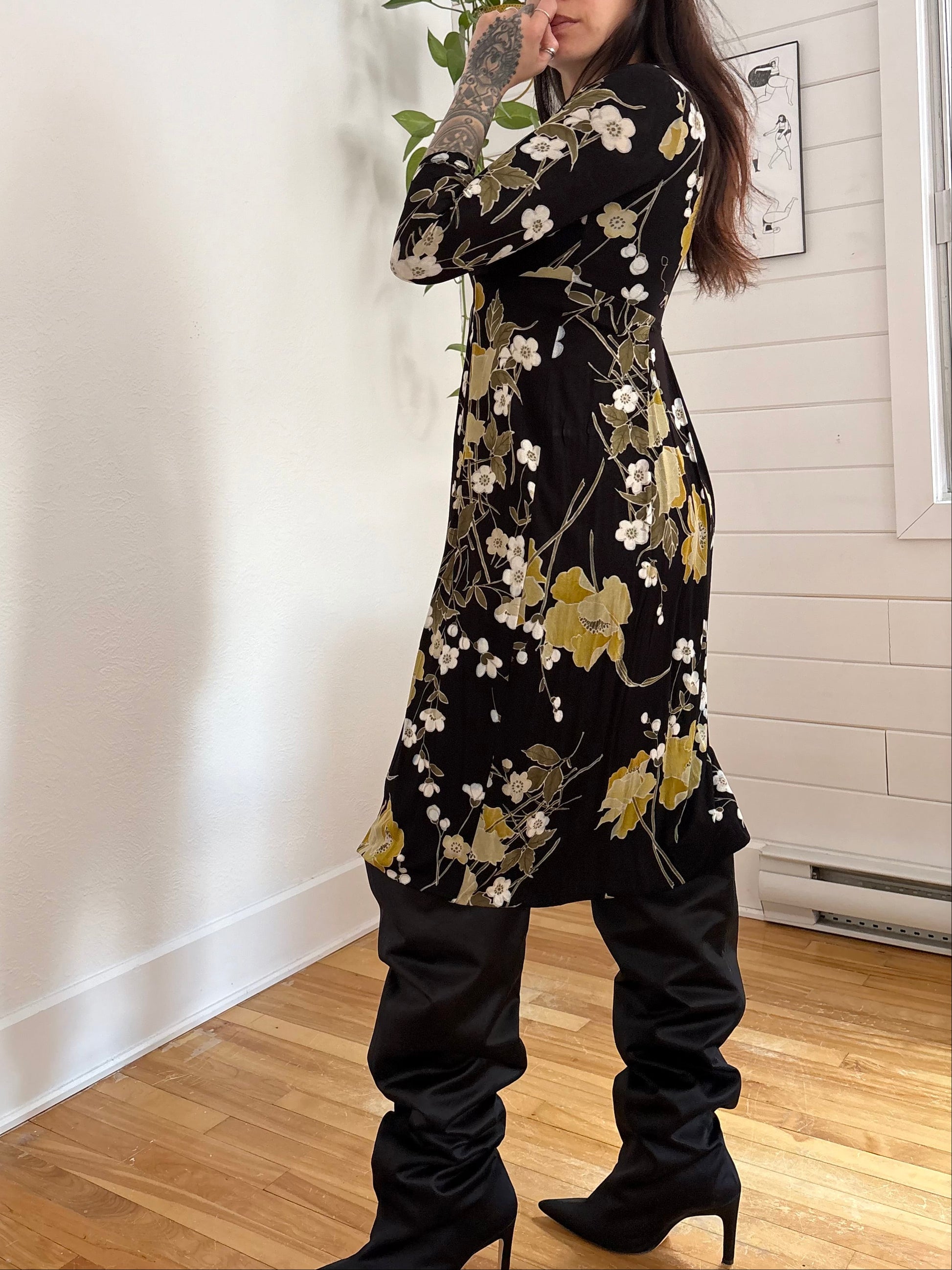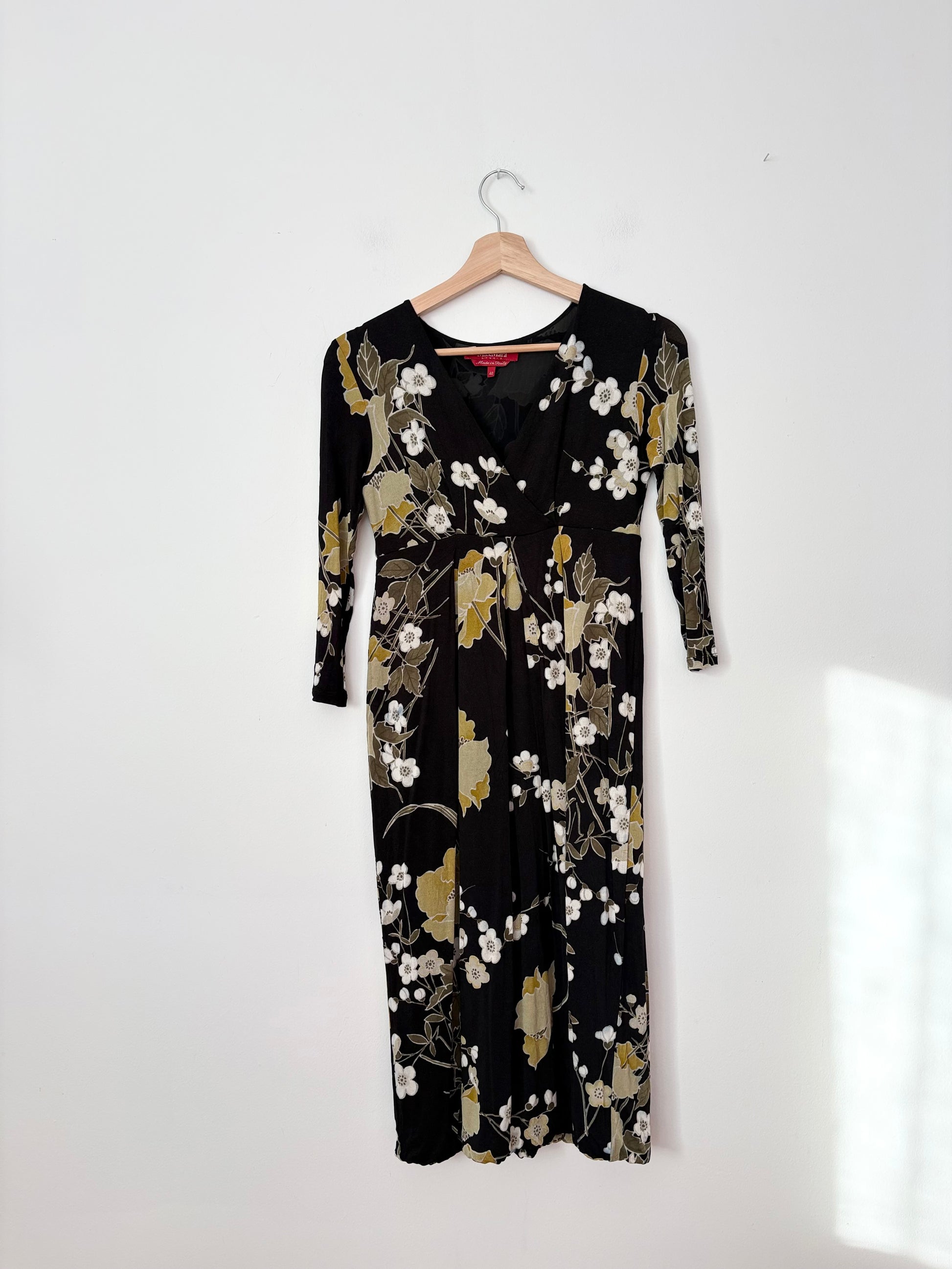 From the earlys 00's Maxmara Studio collection, fully lined V neck floral dress with 3/4 sleeves and a light bubble hem