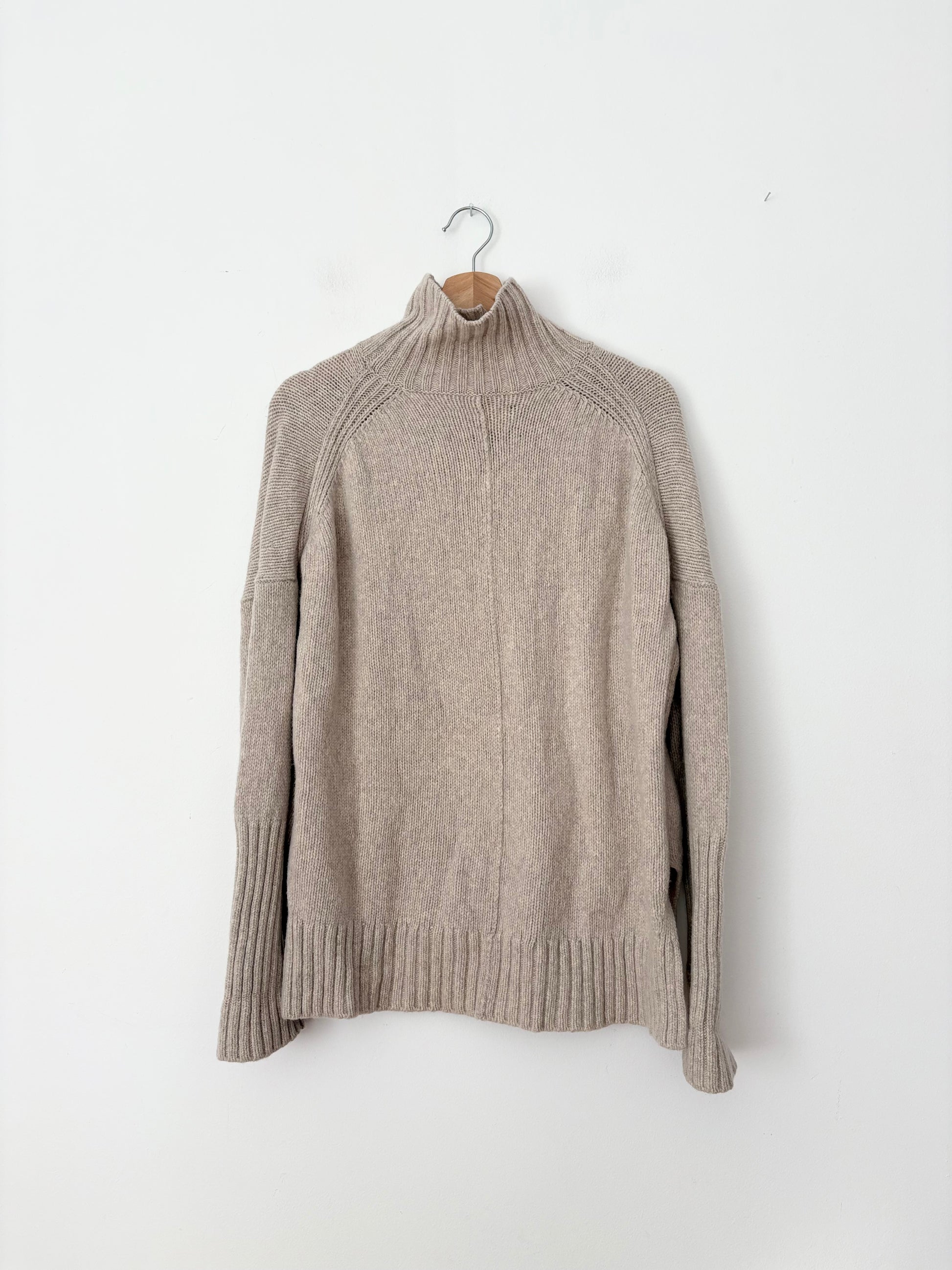 Soft knit on this oversized turtleneck sweater in merino wool with long sleeves & thumbholes